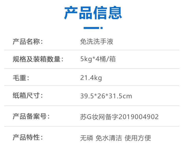 产品说明:深层洁净,温和润肤,免洗速干,清爽舒适。